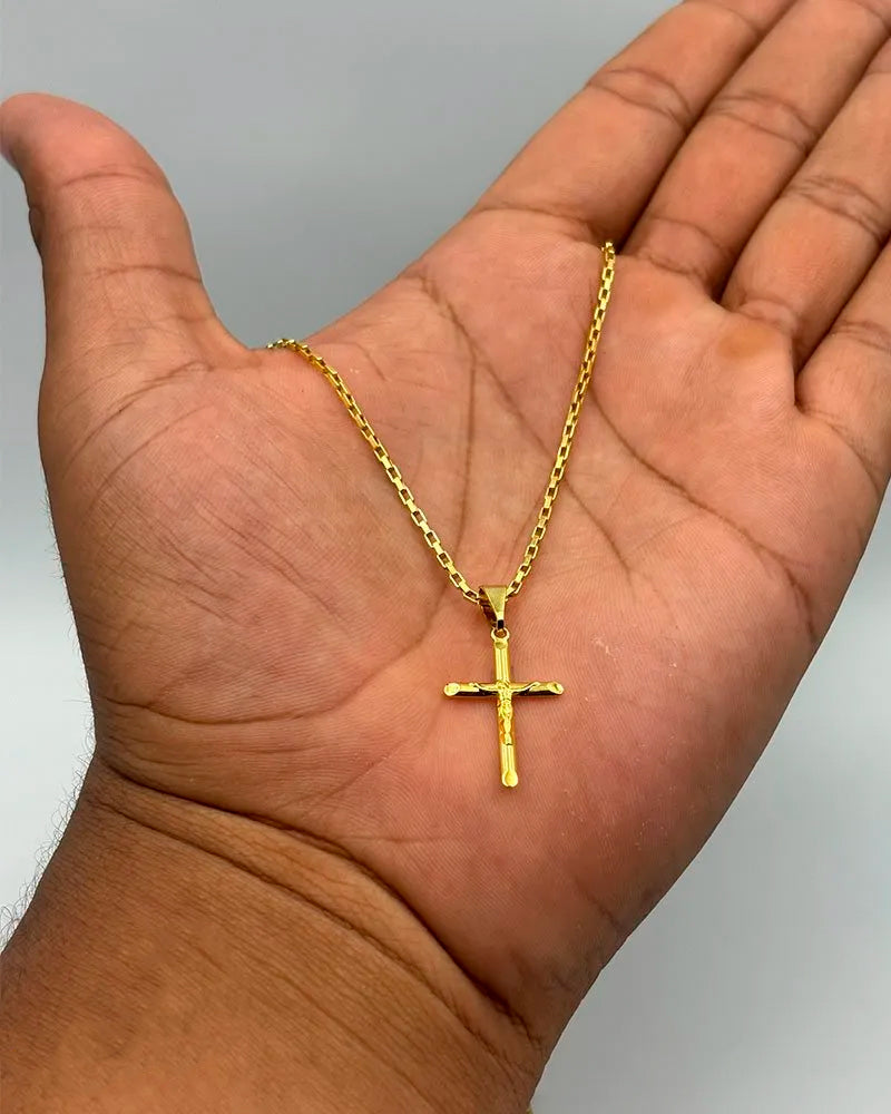 CORRENTE VENEZIANA 1MM - 70CM + PINGENTE CRUZ PALITO PEQUENA - 2,5CM - BANHADO A OURO 18K -
