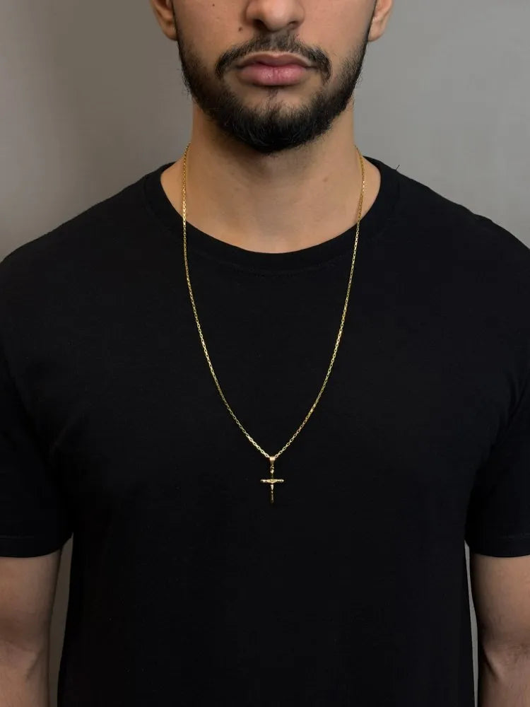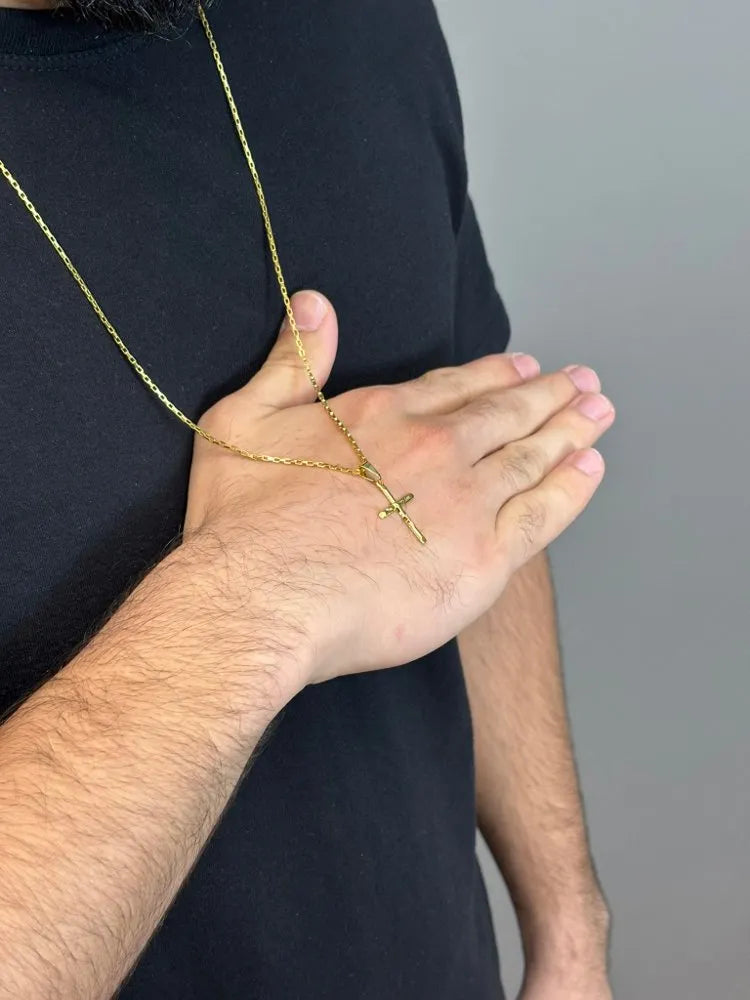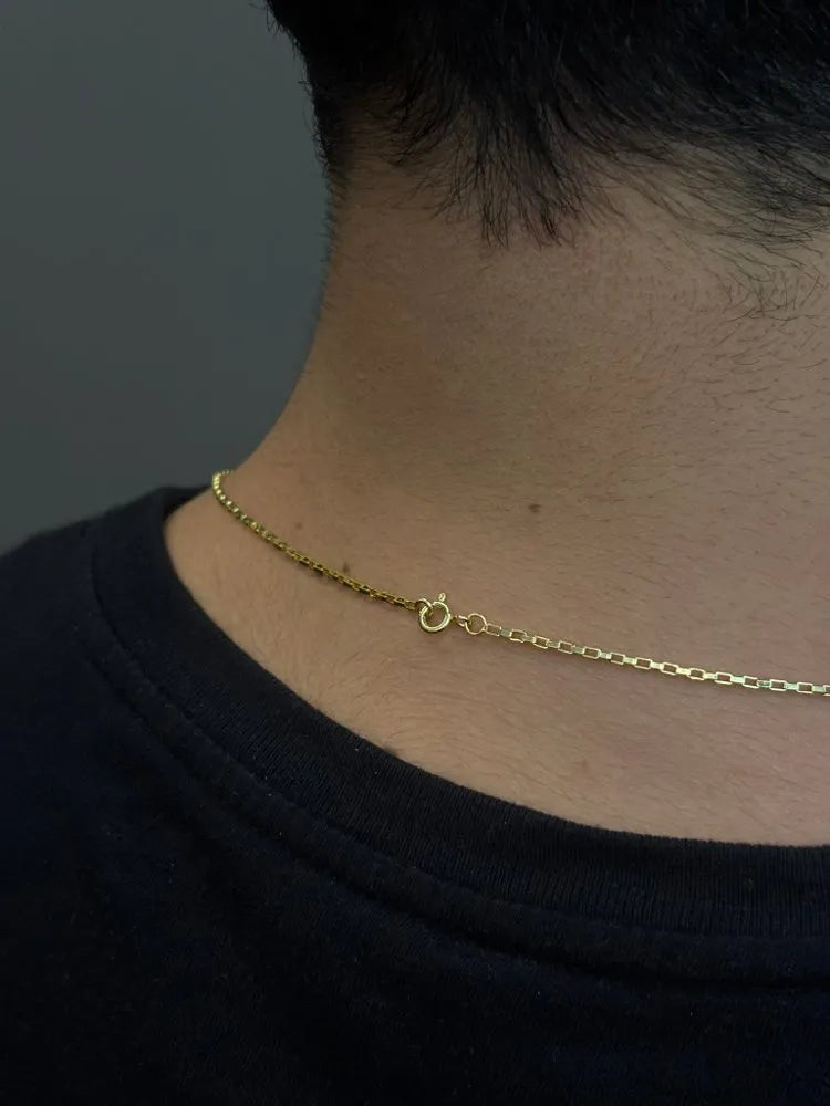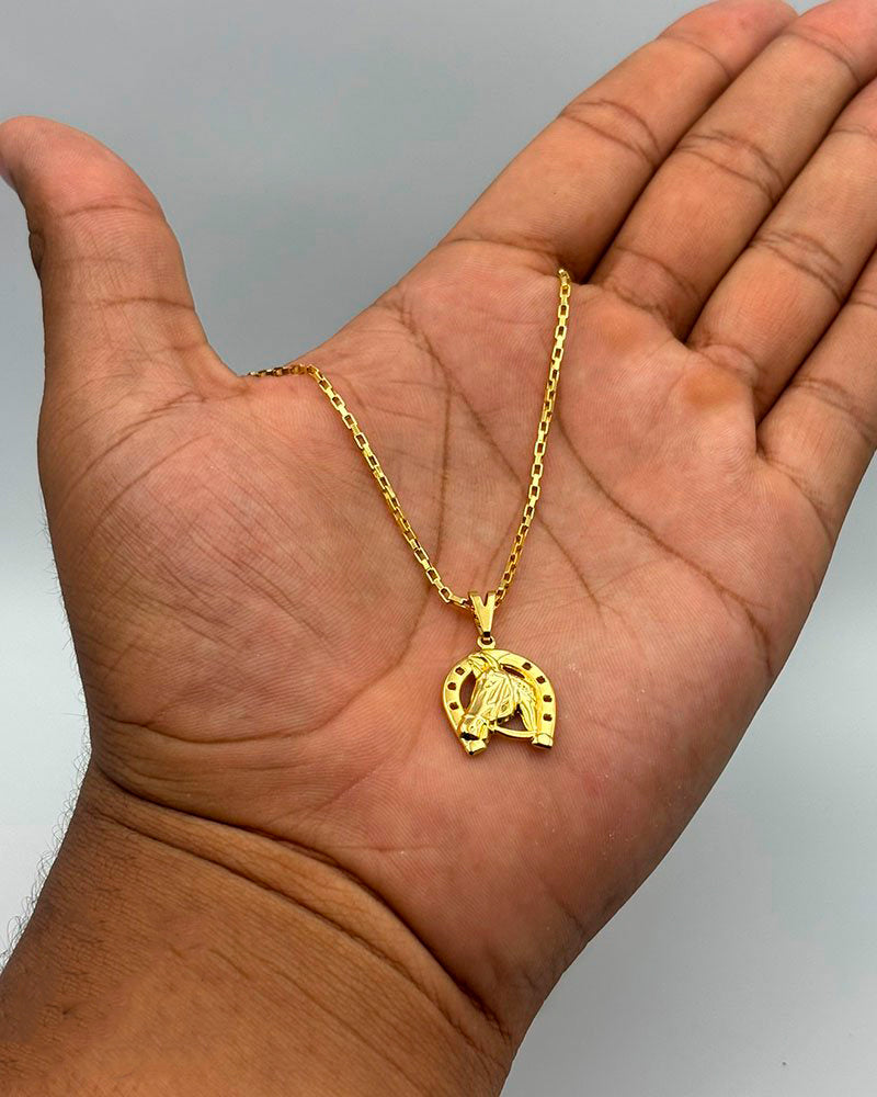 CORRENTE TIJOLINHO 1,5MM - 70CM + PINGENTE FERRADURA PEQUENA - 2x1,1cm - BANHADO A OURO 18K -